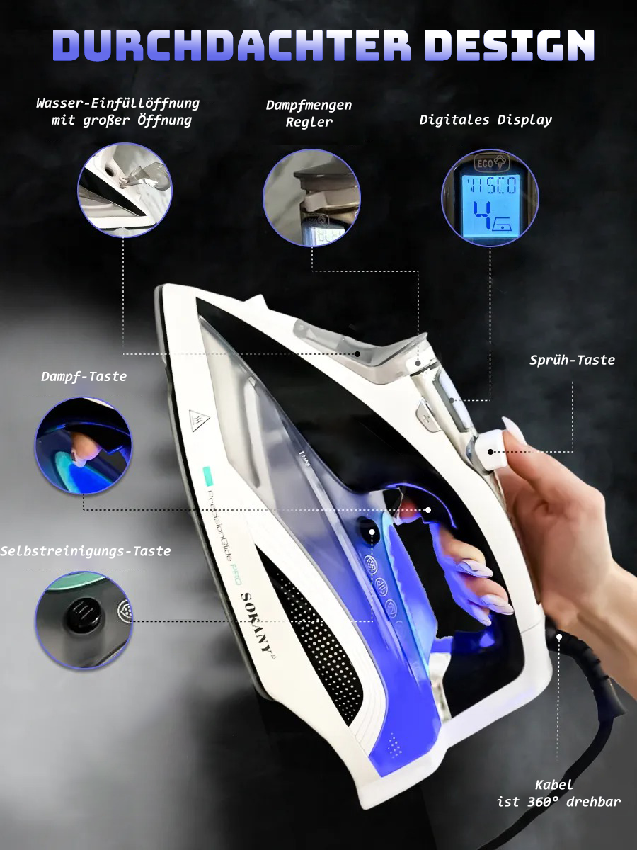 Erleben Sie die volle Leistungskraft und das Design des Homezy Dampfbügeleisen